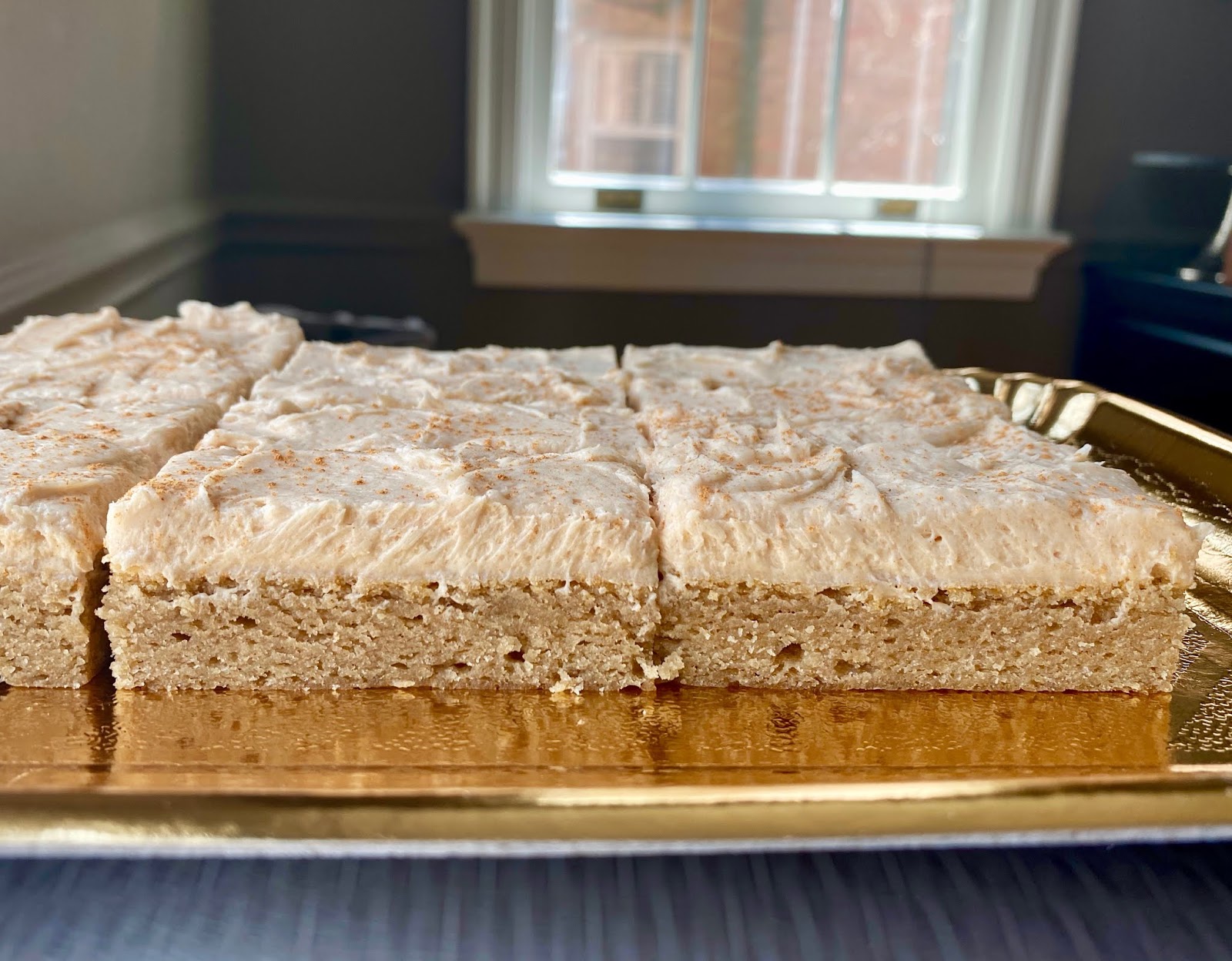 I feared that my failure to include the cream of tartar would have a negative impact on the finished bars, especially the texture, so I kept my expectations low when I took my first bite. It was so, so good. My bars did in fact taste just like cake, but the cinnamon cake and the cinnamon frosting were both so delicious. I was afraid that the cake might be too spicy (there are equal amounts of cinnamon in the cake and frosting, and I used Penzey's Vietnamese cinnamon, which is fairly strong), but instead the bars were the perfectly combination of spicy and sweet. And while the amount of fluffy frosting was definitely excessive, I wasn't complaining -- it was decadent but delicious.